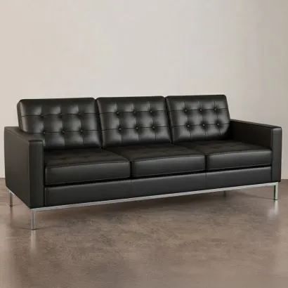 Sofá Revestido em Couro - 3 Lugares - Menache