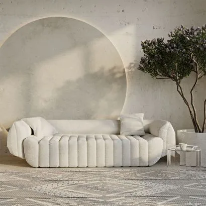 Sofá Curvo em Tecido Bouclé - 3/4 lugares - Souta