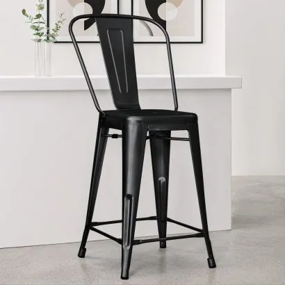 Banco bar com encosto - Design industrial - 60cm - Nova edição - Stylix