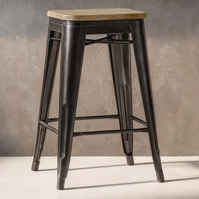 Banqueta Desenho Industrial - Madeira e Aço - 46cm - Stylix