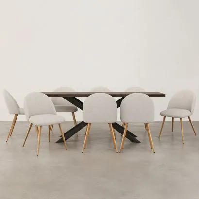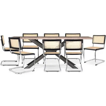 Pack Mesa de Jantar em Madeira Design Industrial (220cm) & 8...