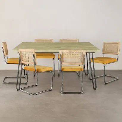 Pack Mesa de Jantar - Design Industrial 150cm + Pack de 6 Ca...