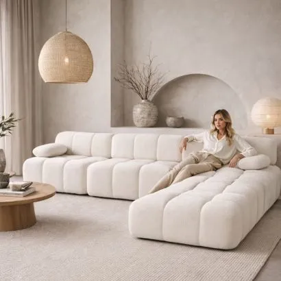 Poltrona Estofada em Tecido Bouclé - Design Curvo - Drisela
