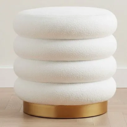 Pufe Redondo Estofado em Tecido Bouclé - Posera